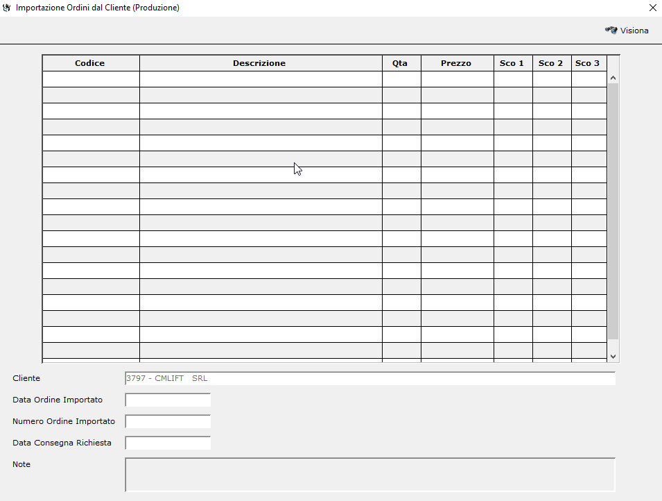 N.B. Questo programma come da definizione importa gli ordini dal cliente, quindi è probabile che nel momento in cui importiamo l’ordine di un cliente nel nostro programma ci dia degli errori e non riesca ad importarli. Ciò accade perché i codici prodotto scritti sull’ordine non corrispondono a quelli che abbiamo nel gestionale. Per associare lo stesso prodotto con due codici prodotto diversi esiste un altro programma che ne permette la trascodifica: GESTRASCOD (Gestione Codici Trascodifica).