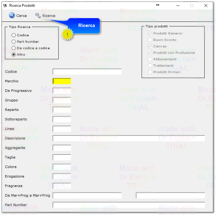 Se si preme “Cerca Prodotti” il programma ci permette di ricercare un prodotto attraverso dei filtri come: Marchio, Linea, Reparto, Sottoreparto, ecc. (Figura 3)
