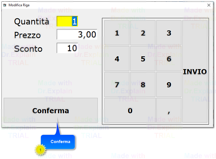 Una volta inserito il prodotto nella vendita esiste la possibilità di poter cambiare il prezzo, lo sconto e la quantità attraverso l’icona della “penna”, una volta inserite le modifiche cliccare su “Conferma” (Figura 4-5).