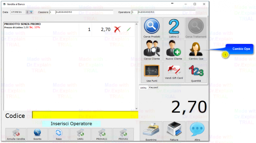 Cliccando sul pulsante “Cambio Ope” si può variare l’operatore corrente che sta effettuando la vendita digitando il suo numero. (Figura 10)