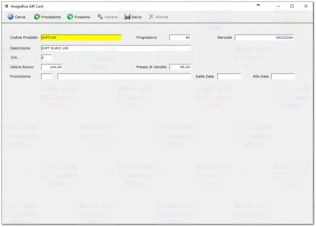 Siccome i buoni/gift card vengono trattati dal gestionale come se fossero dei prodotti veri e propri, hanno anche loro un’anagrafica gestibile dal programma ANABUO – Anagrafica Gift Card, ecco me si presenta: (Figura 14)