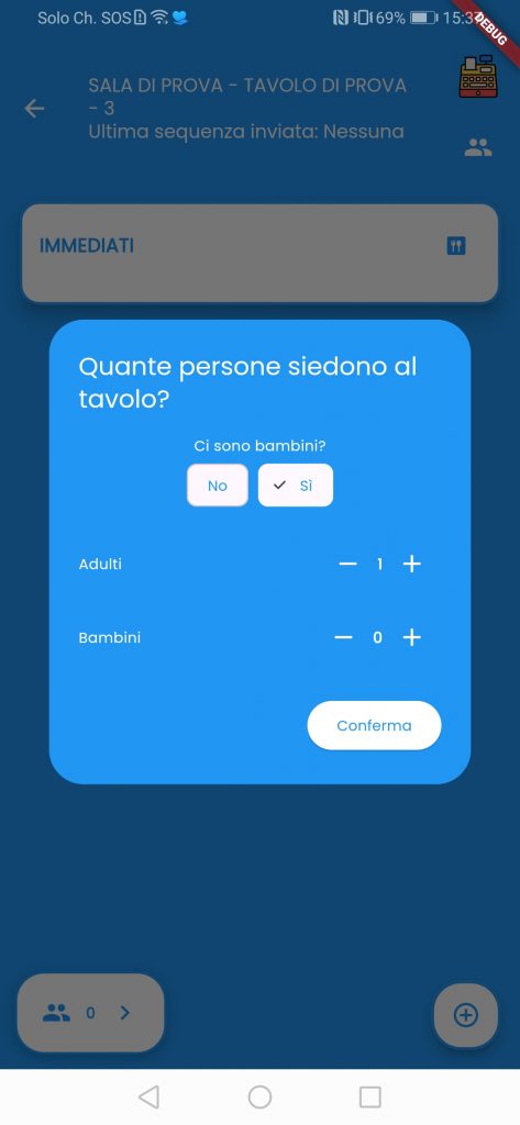 Una volta selezionate le persone che siedono al tavolo clicca su conferma quando hai cliccato su conferma ti porterà in questa schermata